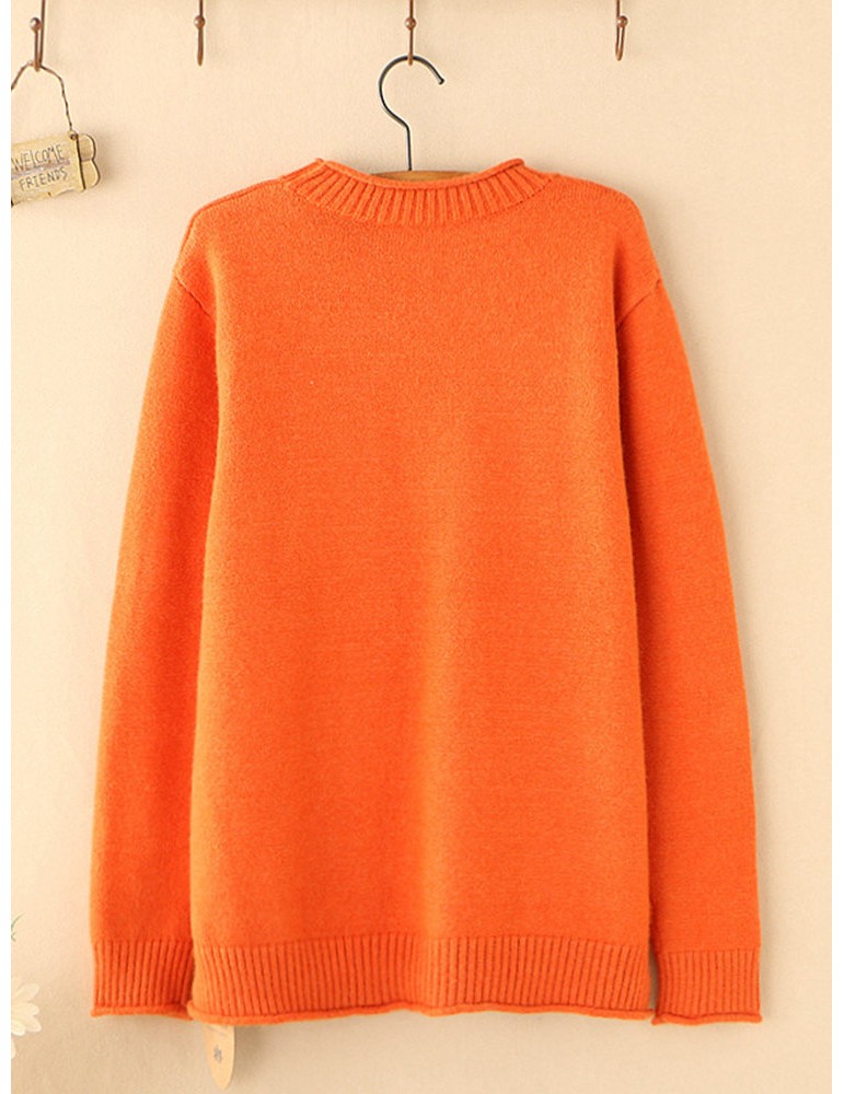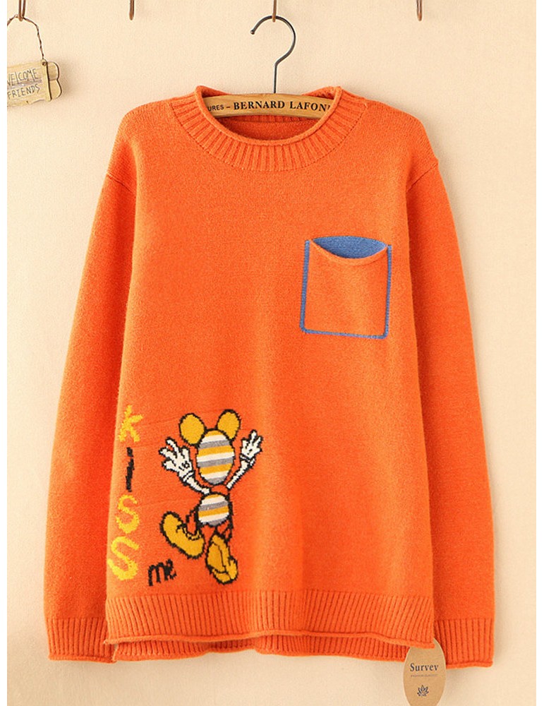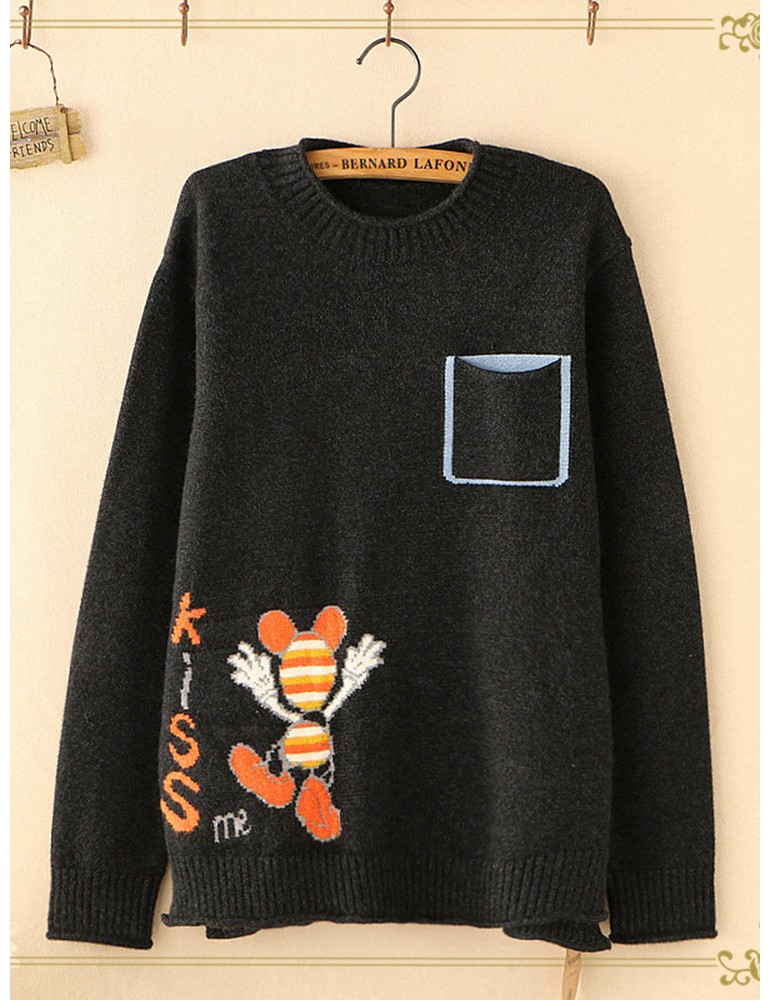Cartoon Pullover Long Sleeve Crew Neck Sweater For Women