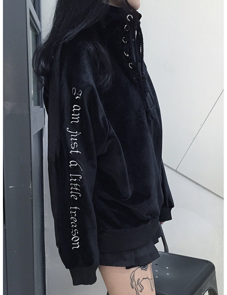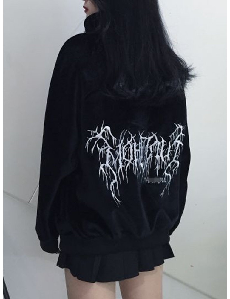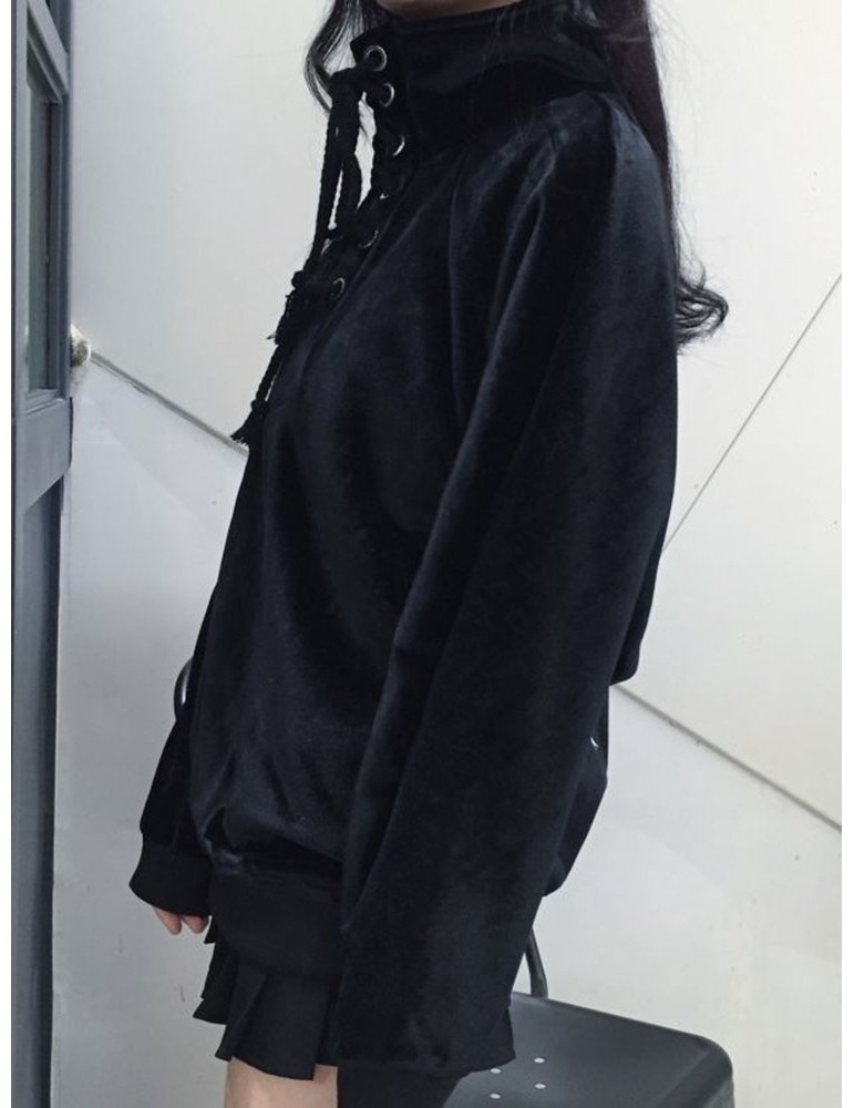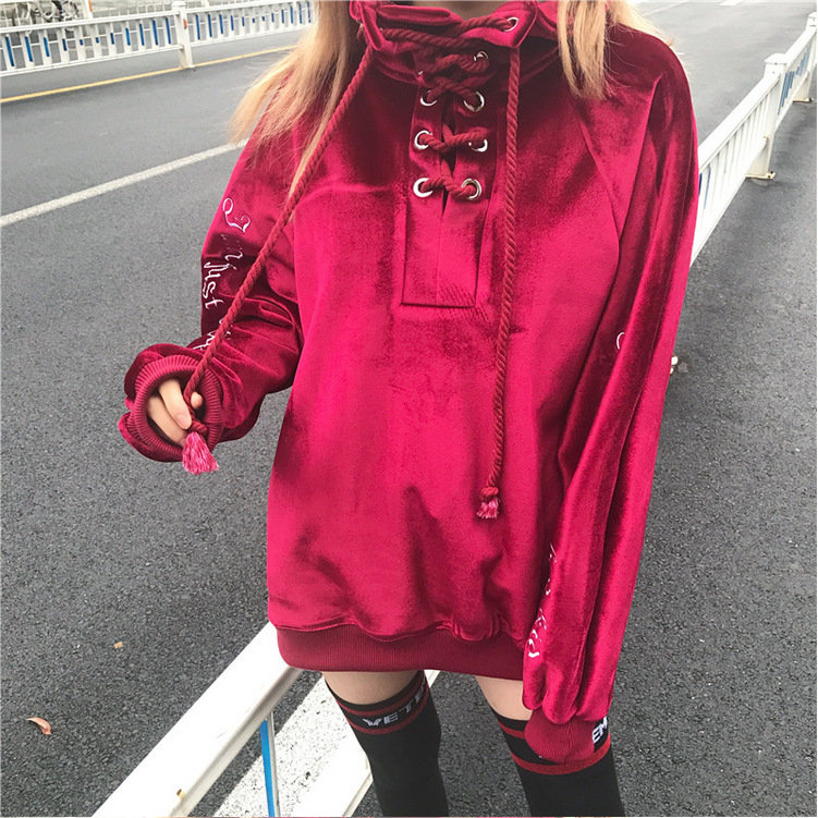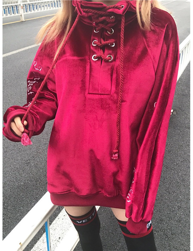 Casual Velvet Letter Print Bandage Turtleneck Women Sweatshirts