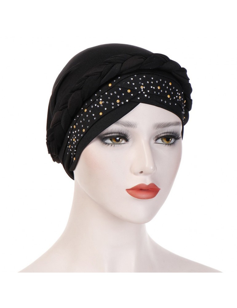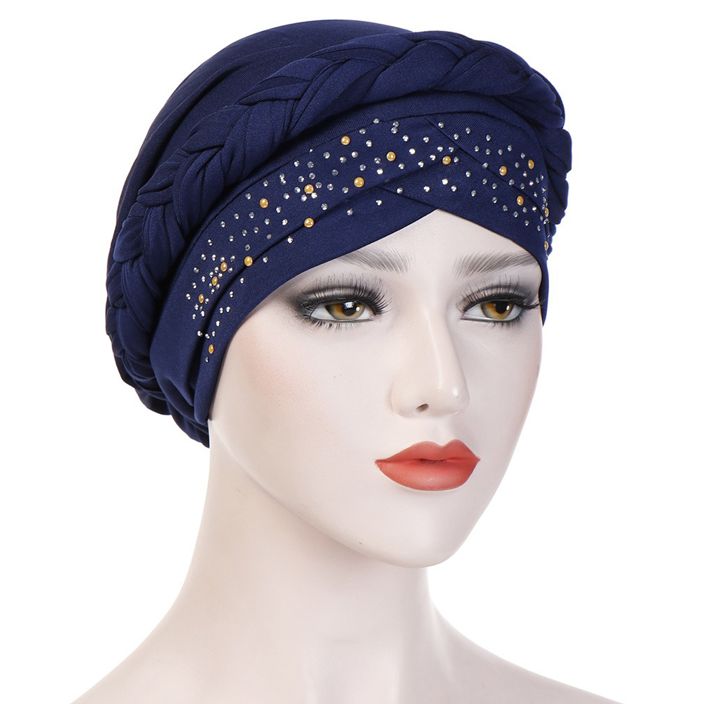 Womens Vintage Tie Point Drill Beanie Cap Casual Milk Silk Soft Solid Bonnet Hat Headpiece