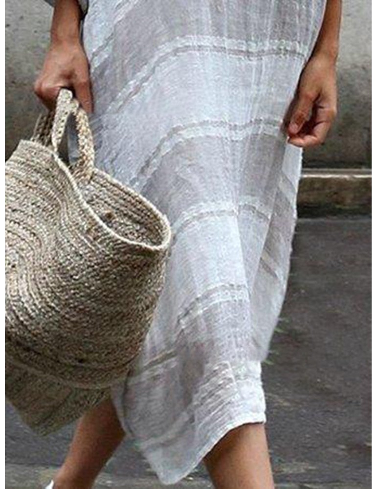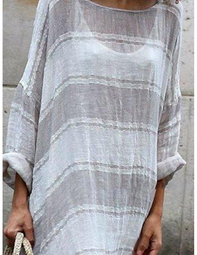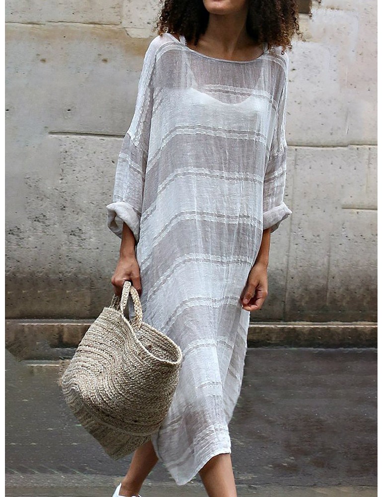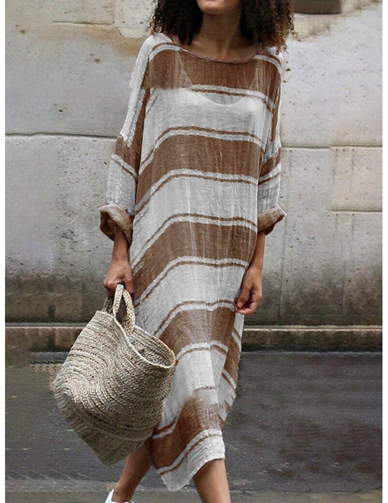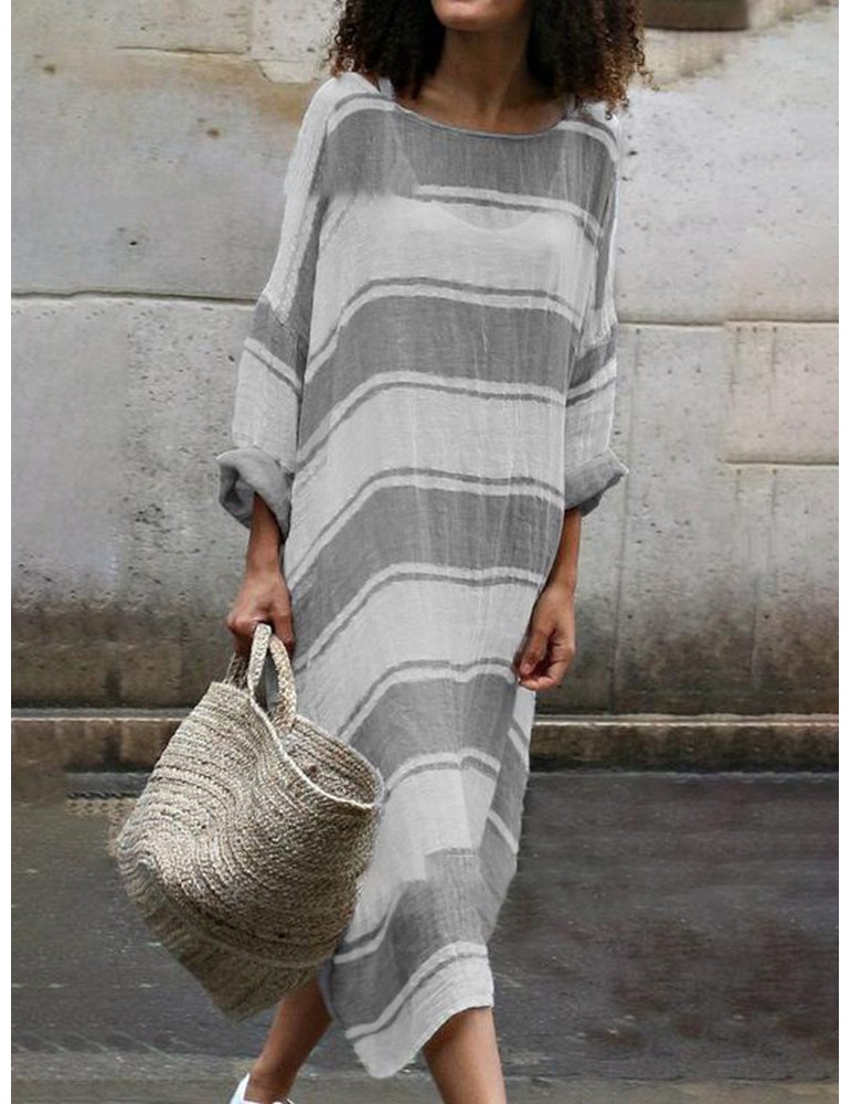 Contrast Color Stripe Loose Long Sleeve Casual Maxi Dress