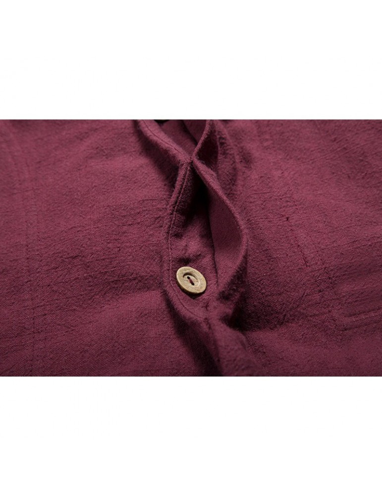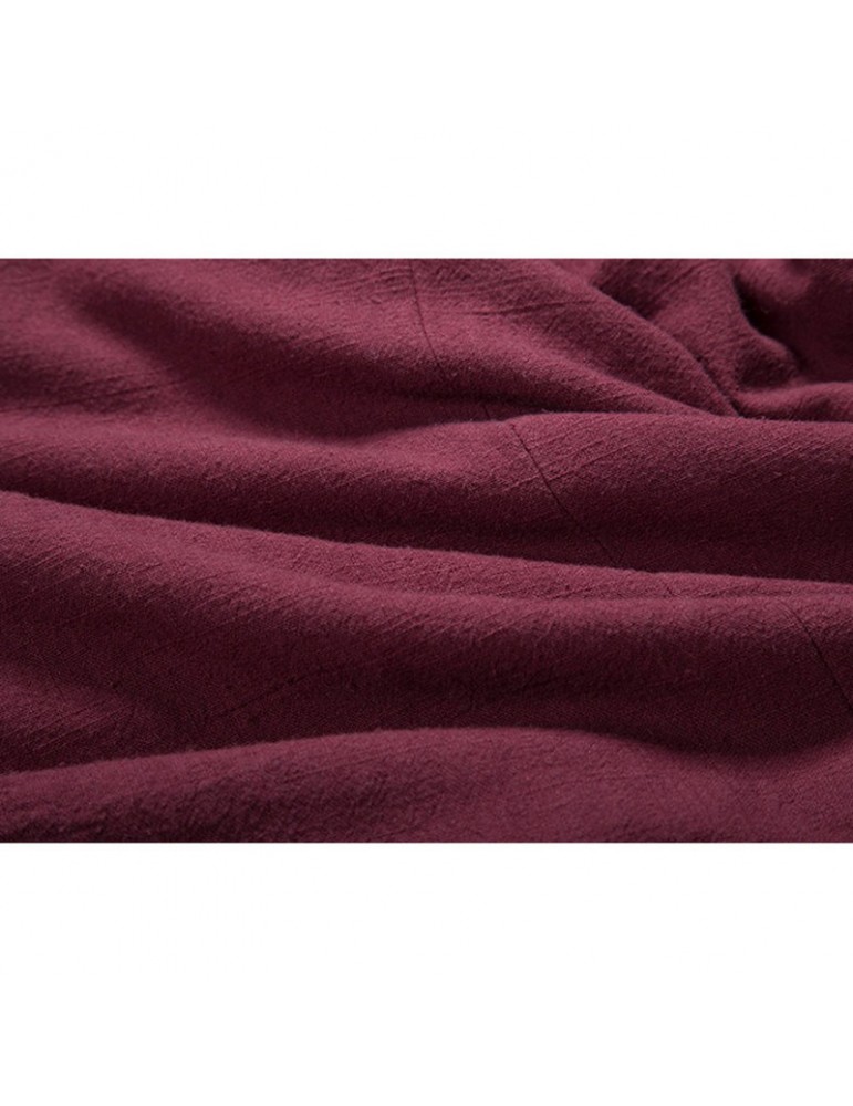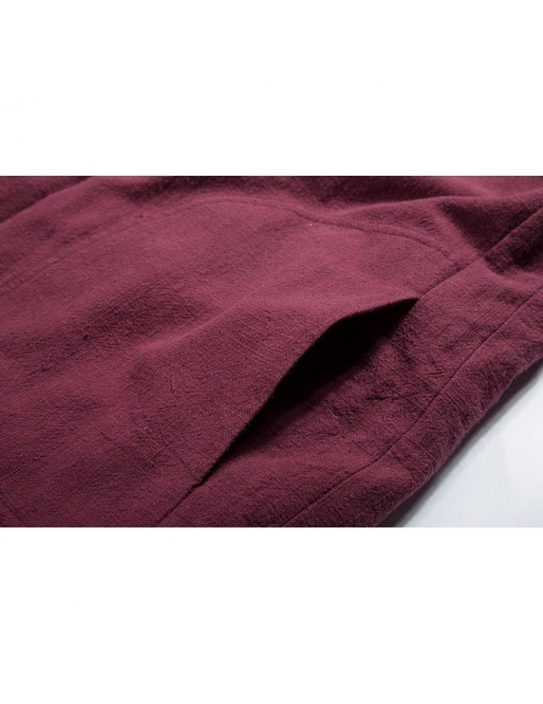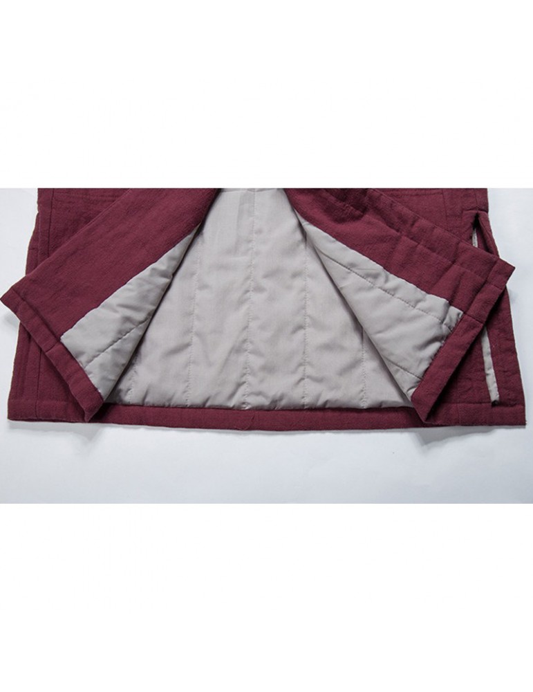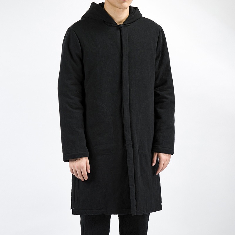 Mens National Cotton Linen Hooded Collar Solid Color Long Sleeve Thicken Coat Casual Midlong Jacket