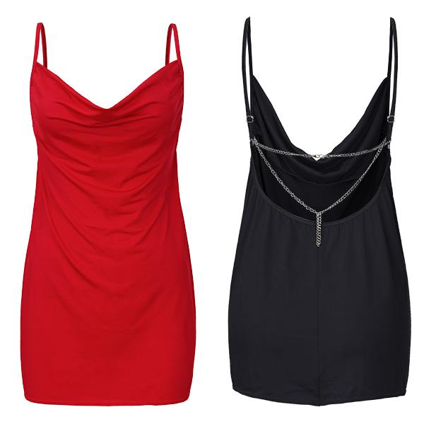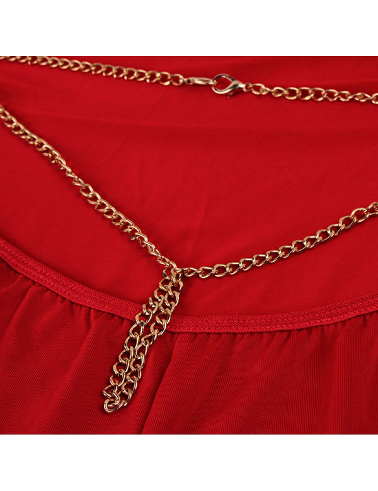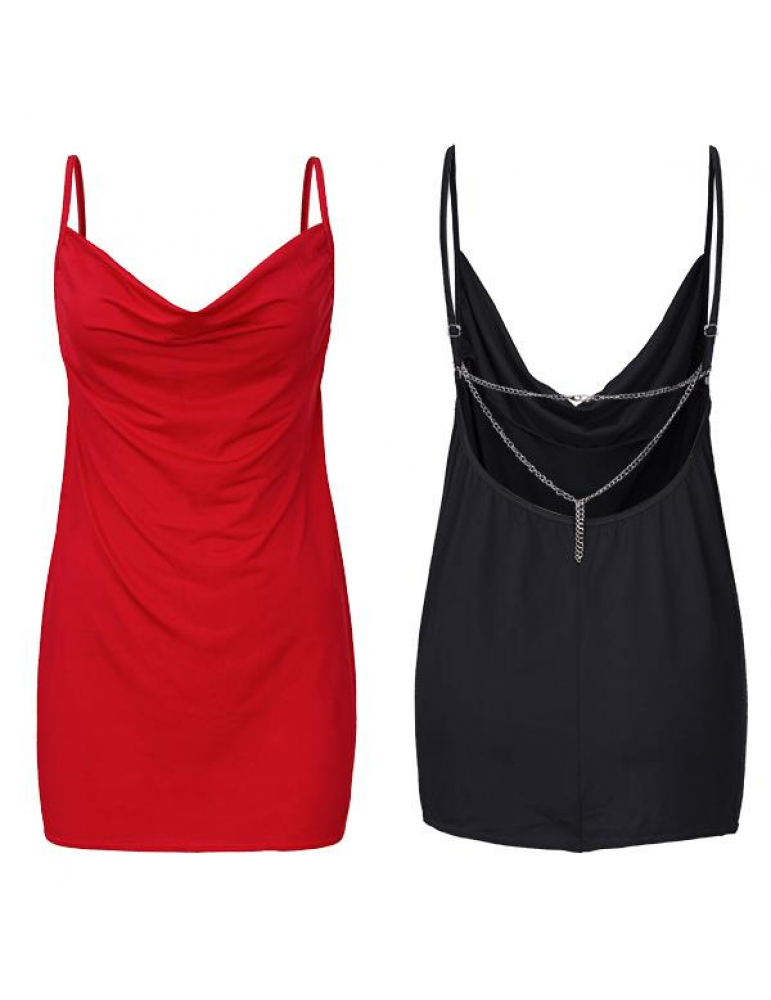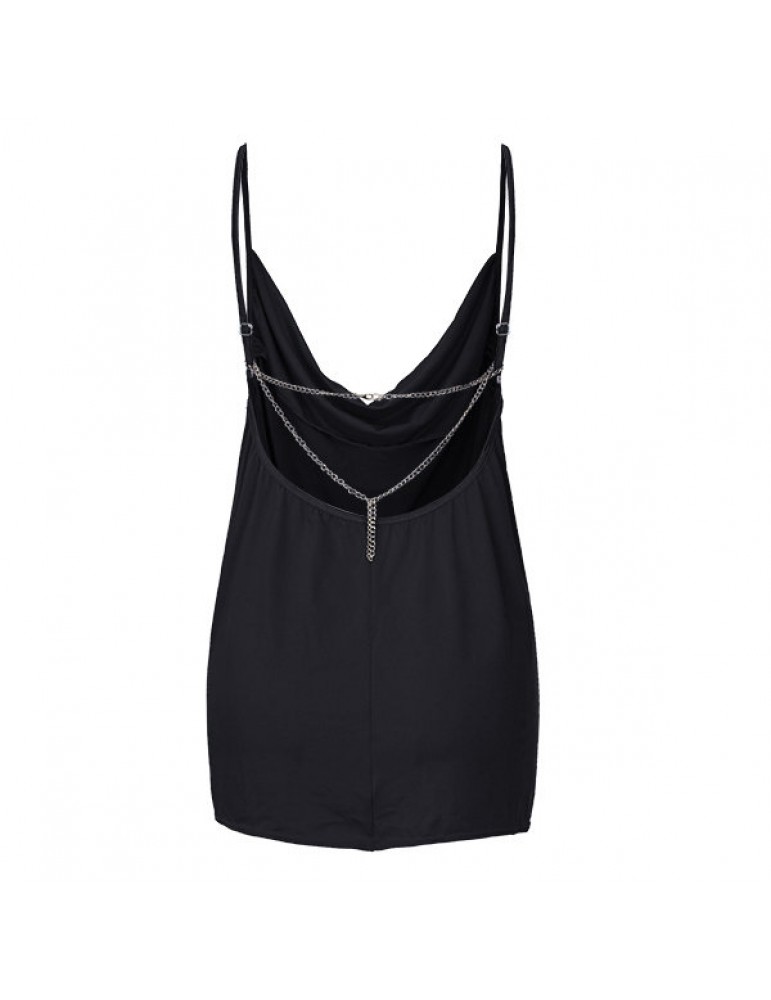 Sexy Spaghetti Strap Smooth Hollow Backless Metal Chain Chemise For Women